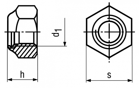特長 六角ナットに先端部にナイロンがかしめてあるナットです。おねじがナイロンへ食込み、緩み止め効果が得られます。車両関係・機械等の振動の多い場所へ使用します。