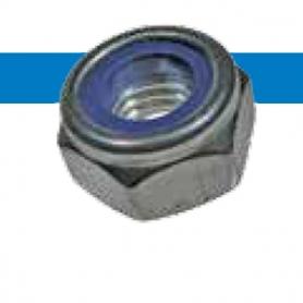 特長 六角ナットに先端部にナイロンがかしめてあるナットです。おねじがナイロンへ食込み、緩み止め効果が得られます。車両関係・機械等の振動の多い場所へ使用します。