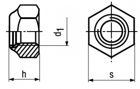 特長 六角ナットに先端部にナイロンがかしめてあるナットです。おねじがナイロンへ食込み、緩み止め効果が得られます。車両関係・機械等の振動の多い場所へ使用します。