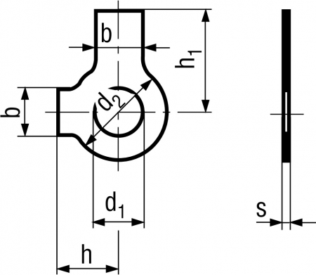 特長 丸ワッシャーに出っ張りがあり、舌のように見える事からこの名前がついています。出っ張った部分を折り曲げ、ナットへ巻きつけ座金が回るのを防ぎます。それにより緩み止め効果が得られます。2か所に出っ張りがある為、片舌付きワッシャーより効果があります。