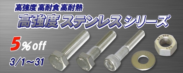 3月1日より高強度ステンレスシリーズの割引キャンペーンを実施します!                                    ★★ ねじコンシェル.comは全品 税込 価格です ★★                                    リクエスト商品も受付中です。お気軽にご相談ください。                                    取扱い商品、ドンドン拡充中です。