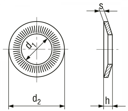 特長 皿バネ状の形状で表面に切れ込みがある座金です。緩み止めの効果があります。
