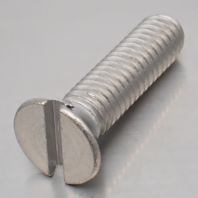 | 特長 | マイナスドライバーで締め付けるタイプで、英語flat head screws(フラットヘッドねじ)の他、皿頭小ねじ、皿ビス、すり割り付き皿小ねじなど名称通り、頭部上面がフラットな「皿」形をしています。相手材に「皿もみ・座ぐり(ザグリ)」をして使用します(皿部分は一般のメートルねじでは90°テーパーなのに対してユニファイでは約80°テーパーと異なります)。マイナスタイプはプラスタイプに比べ形状がシンプルな事から、特に水回りや配管のメンテナンスホールなど埃や汚れが溜まりやすい場所へ使用されます。 こちらはインチねじ(細目)になります。(呼び径)×(呼び長さ)ともにインチで規定され、ねじのピッチは『1"(1インチ≒25.4mm)』あたりの山数で示します。呼び長さは他の小ねじ類と異なり頭部の厚みを含めます。呼び径は細い物は#1(いちばん)#2(にばん)などと「番手」で呼びます。太いものは一インチを8で割った分数の分子の数で呼びます(例1/4=2/8 二分 にぶ、 5/16=2.5/8 二分五厘 にぶごりん)。すり割りサイズに適合した−ドライバーで押す力:回す力=7:3を意識して回します。またステンレスは鉄と比較して焼き付きやすく電動工具やエアー工具を使用した締付けは特にご注意ください。 ユニファイ規格のサイズについてはこちらをご参照下さい。 |