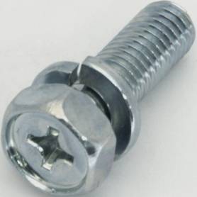 | 特長 | 六角アプセットボルトに緩み止めとして利用されるスプリングワッシャー(SW)が組み込まれています。脱落せず、組込みの手間もないので作業能率がアップします。 頭部の丸みのある六角柱の上面が平らに少し凹んでいて中央に十字溝があるのが六角アプセットボルトの特徴です。そのためボックスレンチ、スパナ、+ドライバー等、様々な工具で締め付け出来、複数の人が扱う場所や頻繁に付け外しが必要な個所でとても便利です。また比較的柔らかい印象の外観なので装飾目的に使用されることもあります。 「セムス(SEMS)」は1930年代に座金組込ねじを開発、特許を取得した米国イリノイツールワーク社の商標から来ています。日本での流通初期に、ねじとSWの2つの部品(2ピースPiece)でできたセムスを[P=2]、ねじとSW、平座金の3ピースの物は[P=3]と呼びました。その後、平座金だけ組み込んだものを[P=1]、座金がISO規格のときは[P]ではなく[I]を用いる、などアルファベットと数字の組み合わせで判別する事が定着しました。 →平座金の規格一覧はこちら |