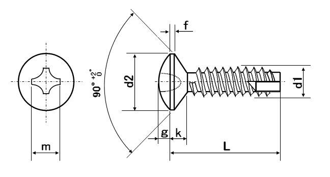 | 特長 | 相手材を削る刃を持たせる為、わずかにテーパーした軸先端部を持つタッピン2種(B0)の軸先1/4周をカットしたタイプ(B1)で、頭部の形状からB1丸皿タッピンやB1丸皿とも呼ばれます。5舒焚爾慮板や非金属・樹脂・硬質ゴム等に、また構造用鋼・鋳物・非鉄鋳物にも使用できます。タッピンねじには他に1.2舒焚爾稜鋼板、ハードボード、木材、樹脂などに適するA型(1種)、5舒幣紊慮板に対応するC0・C1型(3種)が主に流通しています。 相手材の下穴に塑性変形させ(B1・C1タイプは削ることで)ねじ山を形成し(セルフタッピング)するのでねじ単体でねじ締結が出来、ナットやタップ立てが不要です。また雄ねじと雌ねじ嵌合部の遊びが無く緩みや脱落が生じ難くなります。 丸皿はザグリ加工をして頭部を埋め込んで使用し、ザグリできない場合はローゼットワッシャーを使います。引っ掛かりが無く上品な外観となります。 丸皿は「長さL」に頭部厚みの一部を含みます。 ※取付け時には下穴加工が必要です。 |