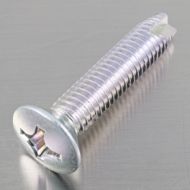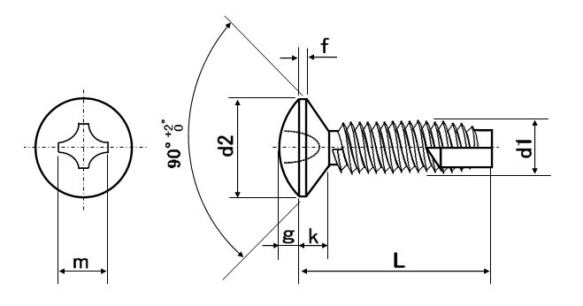 | 特長 | C1丸皿タッピンとも呼ばれ、主に構造用鋼・鋳物・非鉄鋳物・5舒幣紊慮板に使用されるタッピングねじ(タッピンねじ)です。丸皿頭は座面が円錐形状をしてねじ頭部にやや丸みがあり、締結の際には皿グリ(ザグリ加工)をするか、ローゼットワッシャーを併用します。締結後は引っ掛かりが無く安全で見た目も優しい為、蝶番やドアノブ、把手やサッシの取付けなど人目に付き触れることのある場所に化粧ねじとして使用されます。 C1タッピングは軸の先端部が絞られ、先を1/4カットして刃を持たせてねじ込みの際の抵抗が少ないという特徴があります。ねじピッチは小ねじと同じメートルねじ並目でタッピングねじ中最小です。下穴へ自らねじ山を形成するセルフタップタッピングを行うので、ナットの組付けやめねじ立ての工程を省けコストダウンにつながります。 ※「サイズ」の「呼び径×長さL」です。丸皿頭の「長さ」はつばの部分からネジ部先端までとなります。丸み部分の厚みは含みません。 下穴がタッピングねじには必要です。ドリルねじは下穴が要りません。 |