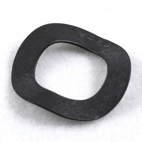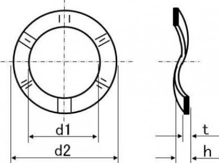 特長 波型座金とも呼ばれます。輪型の薄板に波形状のたわみを付けてばねの働きを持たせ、小スペースで高荷重を得ることができます。ねじの緩み止めとしてスプリングワッシャーよりも薄手で、相手材を傷つける心配もなく平座金不要のためボルトの突き出しが短い所にも使用出来ます。また、軸方向の荷重を円周で平均して受けるため、小さいスペースの緩衝・固定用として有用です。ワークに一定の予圧を掛けて行う部品の固定や位置の微調整、防振、異音やガタツキの抑制、振動の吸収などスペーサー用のばねとして広く用いられています。コイルばねから置き換えることで機器の小型化を図ることもでき、デジカメやスマホのレンズ固定具、各種アクチュエーター、軸受、電動機、弱電気製品、自動車部品や工作機械まで幅広く利用されています。