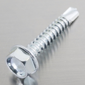 | 特長 | 一般にドリルネジやセルフドリリングスクリューと呼ばれ、頭部はソケットレンチやスパナで締め付けるつば付六角頭です。部材を下地(鋼板等)に止めるファスナーとして建築現場や金属製品の組立等に幅広く利用されています。ドリルねじはタッピンねじ先端を鋼板用ドリル刃とした構造の為、部材や下地材の穴あけ・タップ立て(めねじ加工)・締結をねじ一本で行え、下穴加工・めねじ立ての工程やドリル・タップ等の工具を省けて作業性を大きく向上させ、トータルコストダウンに貢献します。 一般用途になべ、太径はHEX、面一に仕上げるには皿(取付材によりザグリ必要)、ボード・木材等の取付けにリーマ付、金属屋根材等の取付けにシーリングワッシャー付と多様な形状から選択できます。 ねじの呼び径・呼び長さを選定する際には最大働き長さと適用板厚を確認します。『下地材より完全に突き出たねじ山3ピッチ分の長さを除いた有効な締結長さ』が最大働き長さ、先端のテーパー部を含まないドリルの刃先の長さが適応板厚の目安となり締結板厚はそれ以下にします。 |