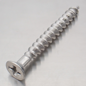 | 特長 | ナゲシビス、万能ナゲシビスとも呼ばれる適用範囲の広いねじです。「長押(なげし)ビス」といわれるようにコーススレッドよりも日本の繊細な木材建築に最適化が図られた木材接合用の内装造作ねじです。 先端に木材の割れを防ぐカット刃を持ち、繊維を削りながら進むためねじ込み抵抗が少なく材料の割れを防ぎます。 40°の角度の高いねじ山と60°の低いねじ山(ハイ&ロー構造)の二条ねじ構造もねじ込み抵抗を減らすのに貢献し、優れた保持力と高い引抜強度を持っています。先端のカット刃と低いねじ山によるねじ込み開始時の安定性が良く、二条ねじによる大きなリードにより素早くねじ込むことが出来ます。 十字穴付の頭部は着座面積の広いラッパ形状です。石膏ボードや軟質木材では頭部を沈め面一と出来ます。また半ねじタイプなので接合部に部材同士の間隙が出来ません。 |