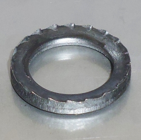 | 特長 | 緩み止め座金の一種で皿をひっくり返したような皿ばね形状をしています。六角穴付ボルト用のSHタイプはボルト頭部を沈められるよう外径が小さく若干薄く、裏側(被締結材側)にはねじの戻り回転による緩みを防ぐキザギザがあります。 ねじ・ボルトは、締め付けた時に発生する軸力(おねじ軸部の引張力)と被締結物の圧縮力(締付力)の均衡により締結します(この均衡している力を予張力と言います)。軸力を高くすると緩み止め効果を高めることが出来るため、高トルクで締結できるキャップボルトは緩みに強いと言えます。GTワッシャーは強度区分12.9の六角穴付きボルトの高い軸力にも適応しています。また、複数ボルト間のトルク係数のばらつきを抑えるので高い締付けトルク設定をした締結を行えます。更に、GTワッシャーは高い締付け軸力に対応した反力を持ち、ボルト軸力の落ち込みをカバーして予張力を保持します。 一般ボルト用LHタイプは外径が大きく幅広です。 ボルトワッシャーの呼び径を合わせてご使用ください。(M10ボルト→M10ワッシャー) |