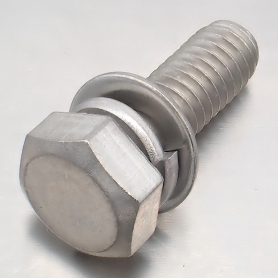 | 特長 | 座金組込六角ボルトP=4や六角トリーマP=4とも呼ぶトリーマセムスP=4は別名通り座金(ばね座金2号と平ワッシャーJIS小形)を組み込んだボルトです。通常の座金のように座面陥没を防いだり緩み止めの効果があります。アセンブリの際の座金組込みの手間を省き、組込み忘れのミスをなくします。六角ボルトから座金が抜け落ちないことで作業能率を上げ、トータルで時間と労力を節約できます。 座金が抜け落ちない理由は製造過程にあります。六角形の頭を成型したブラインド(ねじ山のないボルト)に、スプリングワッシャーと平ワッシャー(JIS小形)を組み込んでからねじ山を転造にて成型します。切削加工と異なり転造加工後はねじ山が盛り上がるのでワッシャーの内径より大きくなり座金は抜け落ちなくなります。 トリーマセムスには平座金だけ組込まれたP=1、ばね座金だけ組込まれたP=2、平座金(旧JIS)とばね座金を共に組み込んだP=3 そして平座金がJIS小形の本品P=4と使用目的に応じてお選びいただけます。 →平座金の規格一覧はこちら |