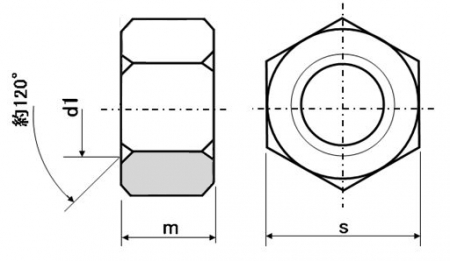 | 特長 | 厚ナットや10割ナット2種(十割ナット二種)、またJES規格のナットとしてJESナットなどの名前があります。六角ナット2種と同様に六角柱形状の上下両面が面取り仕上げで呼び径のサイズが高さとなるナットです(例:M10の六角ナット2種通常品は高さ8个任垢、こちらは10个塙發気聾討啖造痢孱隠鯵筺廚任后法スパナ、レンチなどの一般工具を使用しておねじをねじ込み、対象物を固定・締結します。 六角ナットは1種・2種・3種等に分類されます。通常の1・2種は高さが呼び径の8割で形状は1種が片面取り、2種は両面取り仕上げです。3種は低ナット・ジャムナット・コンタルナット等と呼ばれ、両面取りで高さが呼び径の6割程度と低なります。4種は上面が面取り下部は座付きですがほとんど一般流通しておりません。 更にナットの高さが必要な場合には高ナットをご利用ください。 |