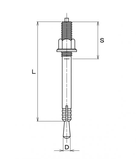 | 特長 | サンコーテクノ製の金属系あと施工アンカーです。Aタイプは全長が長く、木材等の厚物部材の取付けに最適です。穿孔・アンカーの打込み・部材の固定という一連の作業を取付け部材の上から簡単かつスピーディーに行える芯棒打込み式です。 ハンマーでアンカーの芯棒を本体頂部に接するまで打ち込み固定しますので施工完了の確認が目視で確実に行えます。また、取付け物の上からの作業は位置ずれリスクを最小にします。 同じサンコーテクノ製のオールアンカー Cタイプはサイズ展開が幅広く、メートルねじだけでなくインチねじ(ウィット規格)も用意されており手摺や椅子、設備架台やラック等の取付け・固定に幅広く利用できます。ブロック塀・壁にはCタイプの2倍近く開脚することで強力に固定するBタイプをご利用ください。表示パネルの取付け等の施工後に突起物を残したくない場合には“ねじなしアンカー”YタイプやTタイプが適しています。 穿孔深さは埋込み深さに外径分ほどを加えます。モルタルや取付け物の上から直接穿孔する場合は、取付け物分を穴の深さに加えてください。 |