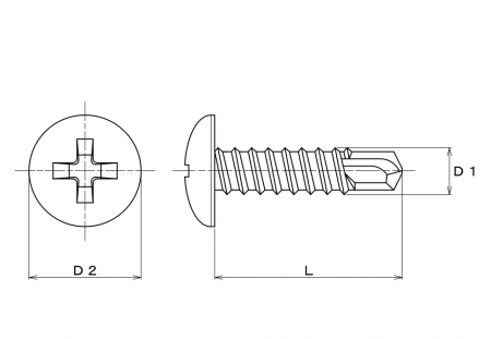 | 特長 | なべ頭よりも低い丸みのある頭部と広い着座面が特徴のトラス頭を持ちドリルビス トラスなどとも呼びます。頭部径が大きいために部材を押さえる力が強く薄いパネル等もしっかり保持します。また、取付け部材の先穴径を大きく出来るので作業性も向上し締結後の外観もすっきりします。サイディング工事、金属外壁工事など建築の分野で利用されています。 ドリルネジは先端部が鋼板切り刃(ドリル)になっている為、タッピングねじでは必須の下穴が不要となり、下穴加工、タップ立て(ねじ山形成)、締付け・固定をねじ一本だけ、持ち換え無しで行えます。その為鋼板下地に部材を止める建設現場や製品組立に広く採用されています。作業性に優れ、下穴加工・めねじ立ての工程を省け、トータルコストの削減にも貢献します。 ピアスビスは(株)九飛勢螺(きゅうぴせいら)製のドリルネジで独特な切り刃先と厳格な品櫃管理により低加重でもバラツキの無い安定した鋭い切れ味と頭飛び強度を誇ります。 適応板厚は呼び径M4は1.2-3.6弌呼び径M5は1.6-4.0个任后 |