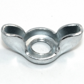 | 特長 | “ちょうナット”や“ウイングナット(英 wing nut)”という外観を蝶のハネに見立てた呼び名を持ちます。その名の通りおねじと組み合わせるめねじ(ナット)です。工具を使わなくても手ではねを摘まんで締結・取り外しが出来るので、繰り返し付け外しを行う締結強度が求められない場所で利用されています。全金属製で耐久性があり清潔に保ち易いこともあり、工業機械、医療機器、楽器や家具等にも採用されています。おねじの蝶ボルトも同様に用いられています。 JISには蝶ナットを翼の形や大きさ、製造法などによって分類する1種〜4種までの規格があります。3種はプレス加工【平板を凸凹の金型に挟んで成型する加工法】によって製造する物とされ、軽量で安価です。3種にはこちらのねじの部分が短い低型とネジ部が長い高形があります。1、2種は翼に空洞が無く1種は先端が円弧状、2種は翼の先端が角型で製造方法の圧造(鍛造)・鋳造等は任意です。2種はさらに翼の幅の大きなHタイプと小さなRタイプとに分けられます。4種は角型の翼に凹みを持ち、製造方法が鋳造と規定されています。 |