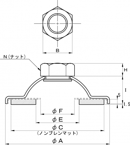 | 特長 | 従来、耐震マットの設置には熟練の設置技術が必要でした。アジャストボルト耐震SH(商品名“DUNK/ダンク”)を使用すると、耐震シートを傷めず短時間で失敗なく設置することが出来ます。 受座底部に “ノンブレンマット”耐震材(ポリウレタンエラストマー)を使用し、接地面ヘピッタっと吸着するため地震などでもズレません。また、市販の六角ボルトと六角ナットを使用しますので任意の長さで調整が可能です。 ノンブレンNonBurenはゲル自体に強い粘着性を持つ材料で、自己接着(粘着)能力と緩衝(耐震・衝撃吸収)能力をあわせ持つ優れたゲル材。700系新幹線の床下防振や半導体製造装置などの精密機械の防振などに採用されています。 ※重心がセンターに無い物や特に水平の必要な時には、アジャストボルトにて水平に設置した後にアジャストボルト耐震SPで固定することをお薦めします。 ※六角ボルトと六角ナット(三種)は別売りです。 アジャストボルト総合カタログはこちら。耐震SHは7ページに掲載。 |