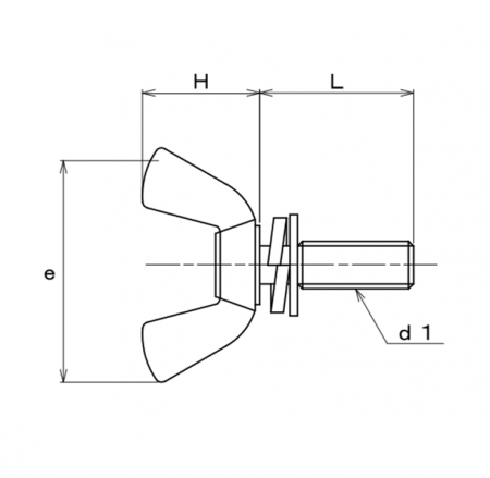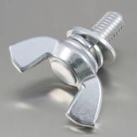 | 特長 | 工具無しで簡単に締め付けが可能なように蝶の羽のようなつまみが頭部に形成されたボルト(蝶ボルト)に陥没防止や緩み止めとしての平座金(JIS規格)とばね座金2号が組込まれたセムス(P=3)タイプのボルトです。蝶ボルト本体はつまみ部分が冷間圧造の(H)タイプ(翼端の形状が角ばった大型のつまみ)、ねじ山はメートル並目になります。製造時に組み込んだ平ワッシャーとスプリングワッシャーはボルト本体からは外れません。取り付けの際にワッシャーを組み込む手間を省き、座金を落としてしまう煩わしさを解消し作業能率を向上させます。 蝶ボルトはウィングボルト、蝶ねじ、ちょうボルトなどとも呼ばれます。締め付け強度は不要で繰り返し脱着の必要のある照明器具・住設関係・農業機器・食品機械・医療機器・電動工具などで多数用いられています。 |