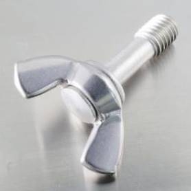 | 特長 | 蝶ボルトの胴部をねじ部よりも細くなるよう加工(脱落防止加工)したボルトです。本品を保護カバーなどに使用すると、胴部とねじ部の段差がカバーのねじ穴に引っ掛かるので脱落しにくくなっています。耐食性に優れたステンレス製で、異物の混入を防ぎたい食品機械や医療機器の安全ガードや点検カバーにお薦めです。 蝶ボルトは工具を必要とせず手で簡単に締め付け取り外しができる様に頭部をつまみに加工したボルトでウィングボルト・蝶ねじ・ちょうボルトなどとも呼ばれています。つまみの部分を蝶の羽や鳥の翼に見立てこのように呼んでいます。医療機器・食品機械・農業機械・電動工具・照明器具その他の締め付け強度が不要な脱着の繰り返しが多い場所で利用します。本品はつまみ部分が冷間圧造の2種(R)タイプ(つまみは小型で翼端が角形)、ねじ山はメートル並目です。 カバー側のネジ穴内径は寸法情報A欄(図面d₁)以上としてください。 CEマーキング対策にも有効な脱落防止ねじ(六角穴付脱落防止ねじ,六角穴付ボタン脱落防止ねじ)もございます。 |