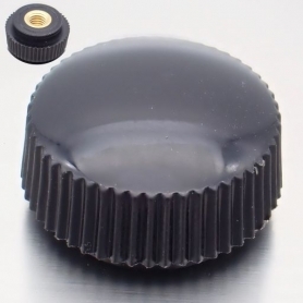 | 特長 | 艶のある外観をした美しい化粧ナットです。黒色ナイロン樹脂で真鍮(快削黄銅BsBM)製のめねじ(ナット)を覆っており、滑り止めのローレット加工により簡単に指でつまんでねじ込みや緩めることが出来ます。ポリアミド(PA)とも呼ばれる熱可塑性樹脂のナイロンはエンジニアリングプラスチックの一種に分類され軽量で強靭性です。耐衝撃性、耐摩耗性、柔軟性に優れ耐油性、耐薬品性、電気的特性も良好です。長期間使用に対する耐老化性にも優れた機械要素の素材です。 突起が無ないので蝶ナットよりも引っ掛かったりしないので安全ですっきり仕上がります。またねじ穴開口部を露出させないので液体の侵入を防ぎ、ねじやパーツを錆から保護します。外径は1が最小のφ11mm(呼び径はM3とM4)、2はφ14mm(M4、M5)、そして本品3はφ17mm(M4-M6)です。さらに大径のL-1(φ20mm M3-M6)とL-2(φ25mm M3-M8) サイズが豊富で、色違いの白ナイロン化粧ナットもございますので用途によりお選びください。事務用機器、照明器具、電気機器、ディスプレイ用器具等様々な用途でご利用いただけます。 |