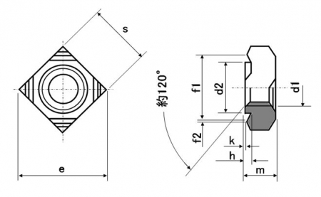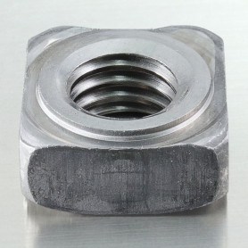| 特長 | 四角溶接ナットP付や四角ウエルド(ウェルド)ナットパイロット付きとも呼ばれます。座面にはパイロット(位置決めガイド)が有り作業性に優れます。産業機械、自動車など様々な場所で幅広く利用されています。1C型はプロジェクション溶接用の突起(プロジェクション)が4ヵ所、ナット本体の着座面四隅にあり六角タイプより高い溶接強度が有ります。溶接ナットはこの四角タイプの他、省スペースの六角タイプや振動に強く薄板に最適なT型タイプがあります。T型タイプはプロジェクション溶接用のダボ付き(1A、1B)とスポット溶接用のダボなし(2A、2B)が有ります。 プロジェクション溶接は溶接時間が極短く加工コストが低い、位置精度が高く複数部品を一度に溶接可能、溶接棒やフラックスは不要等の特徴のある抵抗溶接の一種です。電流を集中させて抵抗熱を発生させる溶接用の突起部(プロジェクション)を設け、加熱と同時に加圧接合をします。発熱は極短時間で突起部に集中するので歪みとワークのダメージを最小にします。 パイロット無し(1D)はこちらへ。 |