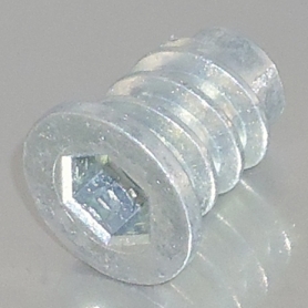 Cタイプは「つば(フランジ)付・ねじ込み」式です。六角レンチを使用して下穴に挿入する“ねじ込み”式は高い引抜強度があります。“つば”は荷重を受け持ち、また位置決めにも利用できます。挿入部がテーパー形状になっており、挿入抵抗が少なくスムーズにねじ込めます。連結金具ボルトM4との組み合わせで接合部の精度・強度を高めながら外観をより美しく仕上ることが出来ます。