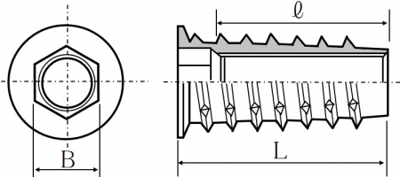 | 特長 | ボルト接合用めねじを木製品へ埋め込む為のインサートナットです。Dタイプは「つば(フランジ)付・ねじ込み」式です。「ねじ込み」式は高い引抜強度が必要な場合に使用します。 本体外周は挿入抵抗が少なく木材の割れを防ぐテーパー(先細り)形状です。下穴へ六角レンチ等を利用してねじ込みます。外周ねじ部の切り欠きが母材にしっかり喰い込んで緩み・戻りを防ぎます。つばが平座金の様に働き、軟材や部材を挟んでの使用にも適応しています。 テーブル脚の様な脱着を繰り返す必要のある箇所や、軟材でしっかりとしためねじを形成しにくい箇所に最適です。組立式家具等に使用すれば高強度・高精度の組み立てを誰にでも簡単に行えます。ジョイントコネクターボルトと組み合わせると外観をより美しく仕上げながら接合部の精度・強度を高めことが出来ます。 ※つば無しはEタイプです。タイプ選定にこちらをご参照下さい。 ※サイズは『d×L』となります。 ※おねじを木材に付けるにはハンガーボルトをご利用下さい。 ※材質の“鉄”は『亜鉛合金ダイカスト』となります。 |