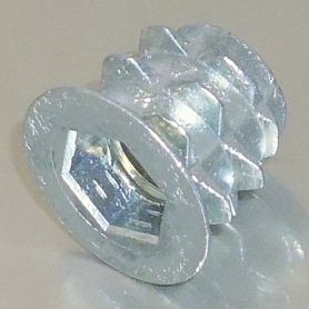 | 特長 | ボルト接合用めねじを木製品へ埋め込む為のインサートナットです。Dタイプは「つば(フランジ)付・ねじ込み」式です。「ねじ込み」式は高い引抜強度が必要な場合に使用します。 本体外周は挿入抵抗が少なく木材の割れを防ぐテーパー(先細り)形状です。下穴へ六角レンチ等を利用してねじ込みます。外周ねじ部の切り欠きが母材にしっかり喰い込んで緩み・戻りを防ぎます。つばが平座金の様に働き、軟材や部材を挟んでの使用にも適応しています。 テーブル脚の様な脱着を繰り返す必要のある箇所や、軟材でしっかりとしためねじを形成しにくい箇所に最適です。組立式家具等に使用すれば高強度・高精度の組み立てを誰にでも簡単に行えます。ジョイントコネクターボルトと組み合わせると外観をより美しく仕上げながら接合部の精度・強度を高めことが出来ます。 ※つば無しはEタイプです。タイプ選定にこちらをご参照下さい。 ※サイズは『d×L』となります。 ※おねじを木材に付けるにはハンガーボルトをご利用下さい。 ※材質の“鉄”は『亜鉛合金ダイカスト』となります。 |