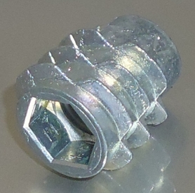| 特長 | 組立て・解体や部材の着脱を繰り返すノックダウン方式家具にめねじを設置するための木材用インサートナットです。現地での高強度・高精度の組み立てを誰でも簡単に行える製品を可能とし、テーブル脚の様に脱着を繰り返す接合箇所には最適です。 鬼目ナットは大きく「つば付・つば無し」と「打ち込み・ねじ込み」にタイプ分けられます。Eタイプは「つば無し・ねじ込み」式です。比較的硬い母材に施工するのに適しており、六角レンチ等を使ってねじ込み、安定した締め付けが可能です。外周ねじ部には切り欠き溝があり、独立したねじ山が母材に食い込み固定され戻りや緩みを防ぎます。また、つば無しの為本体を完全に木材へ埋め込め、高い密着性が得られます。またテーパー形状は挿入抵抗が少なく、木材の割れを防ぎ真直ぐねじ込み易くなっています。 ※鬼目ナットについてさらに詳しくはこちらをご参照ください。 ※サイズは『d×L』となります。 ※木材におねじを付ける場合にはハンガーボルトが便利です。 ※材質の“鉄”は『亜鉛合金ダイカスト』となります。 |