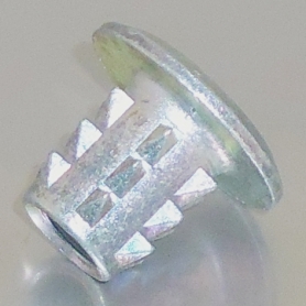 | 特長 | Aタイプの頭部に皿状キャップツバを付けて仕上り表面を袋ナット状に塞いだ、木工向けの打込み式インサートナットです。軟材でしっかりとしためねじを形成しにくい箇所に最適で、打ち込み式なので作業性に優れます。 強力な引張りトルクに耐えるよう設計された外周に並んだ楔状の突起が木部にがっちり喰い込み、回転や緩みを防止します。また、袋ナットタイプの為、ボルト・ナットで接合部材を外側から挟み込むので引抜き強度が高まります。厚みのある頭部の皿状キャップは平座金の様に広い接地面積によって締付け時の力を分散し、軟材でも接合部を傷めず安定した締付けトルクが得られます。デザイン性にも優れているので、外観の意匠性を高めます。 鬼目ナットはボルト接合用めねじを木製品へ埋め込む為の製品です。木工製品においてテーブル脚の様な脱着を繰り返す必要のある箇所に最適で、組立式家具への利用で高強度・高精度の組み立てが誰にでも出来る製品にします。 ※サイズは『d×L』となります。 ※材質の“鉄”は『亜鉛合金ダイカスト』となります。 |