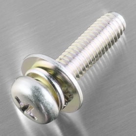 | 特長 | ばね座金とJIS平座金が組み込まれたタップタイトです。組立時に座金をセットする手間が不要なので作業効率が向上します。また、ねじを外した際に座金が脱落する心配も無いので、メンテナンス作業等も容易になります。 タップタイトとはねじの胴部分が三角形(おにぎり形状)になったタッピングねじ(めねじ加工不要で、下穴にねじ込むだけで締結できるねじ)です。胴部分が三角形状のため、通常のタッピングねじに比べてねじ込み抵抗が少ない、相手材のスプリングバックにより緩みにくい、といったメリットがあります。 →平座金の規格一覧はこちら |