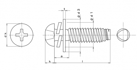 | 特長 | ばね座金とJIS平座金が組み込まれたタップタイトです。組立時に座金をセットする手間が不要なので作業効率が向上します。また、ねじを外した際に座金が脱落する心配も無いので、メンテナンス作業等も容易になります。 タップタイトとはねじの胴部分が三角形(おにぎり形状)になったタッピングねじ(めねじ加工不要で、下穴にねじ込むだけで締結できるねじ)です。胴部分が三角形状のため、通常のタッピングねじに比べてねじ込み抵抗が少ない、相手材のスプリングバックにより緩みにくい、といったメリットがあります。 →平座金の規格一覧はこちら |