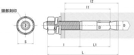 頭部刻印により施工後でもアンカー全長の確認が可能です。