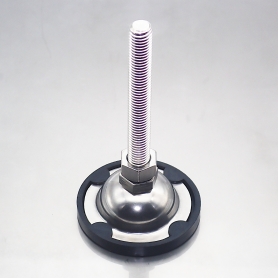 | 特長 | アジャストボルト、アジャスターやアジャスターボルトとも呼ばれ、水平の保持や高さ調整を行うために自動販売機、制御盤、コンベヤー、事務機器などの下部に装着する、回転台座の付いたボルトです。こちらは標準タイプに耐老化姓・耐オゾン性・極性液体への抵抗性がよいエチレンプロピレンゴム(EPDM)が付いた製品です。ゴム付の為、台座が土台からズレにくく振動に強く振動する機械設備やコンベアーの脚に最適な商品になっています。 ※サイズは『D×L1』となります。 |