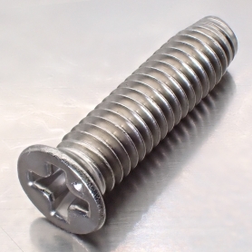 | 特長 | C0皿タッピングで頭部径Φ6の小頭タイプです。先端がテーパーしており主に5舒幣紊慮板・鋳物・非鉄鋳物・構造用鋼に、またメートルねじ並目と同じ細かなピッチである事から振動箇所へも使用します。5舒焚爾慮板や非金属・樹脂・硬質ゴム等には2種(B0・B1)を、1.2舒焚爾稜鋼板・ハードボード・樹脂等には1種(A型)を使用します。2種・3種には軸の先端1/4周分をカットしてねじ込み抵抗を低減したB1・C1があります。 下穴にセルフタッピングし、ねじのみで締結が完結し、ナットやタップ立てが不要です。また、ねじ山嵌合部の遊びが無く緩みや脱落が生じ難いという特徴が有ります。但し、ねじ込み抵抗は大きく強い締め付けトルクで十字穴はカムアウトし易くリセスをなめる恐れがあるので注意が必要です。皿頭は締結の際にザグリ加工をするか、加工できない場合はローゼットワッシャーを使います。 ねじ込み抵抗を減らしたタップタイトや下穴不要のドリルねじも便利です。 「サイズ」欄は「呼び径×長さ」。皿頭は「長さ」に頭部高を含みます。 |
