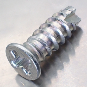 | 特長 | B1皿やB1皿タッピンと呼ばれるタッピングねじ(タッピンねじ)で頭部径がΦ6の小頭タイプです。相手材の下穴へねじ山をセルフタップタッピングし、ナットやめねじ立ては不要です。皿頭は座ぐり加工する事で面一(フラット)に仕上がり、引っ掛かりがなく安全です。ザグリ加工ができない場合は山形座金(ローゼットワッシャー)をご利用ください。ただしこの場合、頭部は相手材から突出する形になります。 タッピンねじは主に3種類あり、こちらのタッピング2種(B1/B0)は薄鋼板及び厚板(5舒焚次法⊆脂、硬質ゴムに適し、刃のあるB1は構造用鋼や鋳物にも対応できます。1種(A型)は1.2舒焚爾稜鋼板、ハードボード、樹脂等に、3種(C1/C0)は5舒幣紊慮板に対応します。 「浸炭焼き入れ」で表面強度を上げ、下穴へねじ込まれることで自らねじ山を塑性変形(B1/C1タイプは切削)によって相手材へ形成出来ます。B1/C1型の先端の1/4周をカットした部分は刃の役割をして相手材を削ってタップ立てを行い、塑性変形のみでタップ立てするB0/C0型よりねじ込み抵抗が小さくなります。 サイズ欄は「呼び×長さ」。皿頭は「長さ」に頭部高を含みます。 ※取付け時には下穴加工が必要です。 |