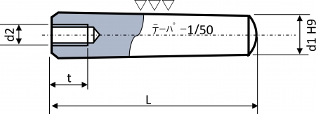 | 特長 | 主に「固定」や「位置決め」、再組立て時の「高い再現精度」を目的に用いられるテーパーピンは、機械部品や治具に設けたリーマ穴へ打ち込んで使います。予めリーマ穴加工が出来る場合は平行ピン、組立て調整後にリーマ加工をする場合はテーパーピン、金型や頻繁に再組立てする場合はダウエルピンと言われています。 円筒形の1/50テーパー(50mm進むと1mm太くなる)で引抜工具にて引抜き易い内ねじ付き、反対側の端は丸先です。ねじ部の無いプレーンや他の部品と組み合わせ出来る外ねじ付きもあります。 取扱いは主に大喜多製となりJIS規格ではなく大喜多規格品で、嵌め合い公差はプラス目(H9)、L(長さ)レンジにより内ねじ径が選べるなどJIS規格品と若干異なります。機械構造用炭素鋼S45C-Aの 調質なし(熱処理なし HRB70-HRC21)、またはS45C-Qの調質あり(HRC30-37)を選ぶことが出来ます。ステンレス(SUS303相当材)は耐食性が必要な場合にご利用ください。 サイズは『d1(最小径)×L(長さ)』です。Lは全長(R面含む)です。 抜取り工具ノックアウターのご購入はこちら。 |
