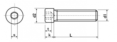 | 特長 | 低頭小頭キャップは一般的な六角穴付ボルトと比較して頭部高さは55〜65%程度低く、頭部径は10〜30%小さい省スペースなキャップボルトです。通常の六角穴付ボルトでは頭部外形が大きくて締結できない箇所に最適です。コンパクトな頭部のおかげでスペースの少ない箇所でも他の部品や工具との緩衝なく締結でき、締結後も悪目立ちせずデザイン的にシャープな印象を与えることが出来ます。また相手材へ埋め込みたい場合でも、一般的なキャップスクリューに比べてザグリ加工が小径で浅く済みます。設計の自由度が上がり、機器全体の軽量コンパクト化を図るに有効なキャップボルトです。六角穴付き低頭小頭ボルトとも呼ばれます。 ※六角穴(s寸法)は同じ呼び径の通常のキャップボルトより小さくなります。 頭部高さがさらに低い「極低頭小頭キャップ」はこちら。 ※材質欄の8.8は引張強度表記となり、材質自体はS45C相当材となります。 |