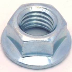 | 特長 | 六角ナット下部座面に広いフランジ(つば)が付いているナットです。フランジ付き六角ナット、座金一体型ナットなどとも呼ばれ、フランジ部が平座金の役割を果たします。ねじ締結はボルト・ナットの締め付けによってボルト・ねじの軸部に発生する張力(軸力)と、被締結材に発生する反発力(圧縮力)が釣り合うことで締結します。この釣り合った力を予張力と呼び、何らかの形で軸力が低下するとねじが「緩み」ます。フランジナットは「フランジ」が平座金の様に着座面を安定させ、広い着座面積により座面の圧力を下げるので母材の陥没による予張力の低下を防ぎます。また、高トルクで軸力を高めることで締結強度を上げ、振動で緩み難いねじ締結を行うことが出来ます。セレート(座面のギザギザ部)は母材にしっかりと食いつき緩み方向へ回転することを防ぎます。緩み止めとして大きな役割を果たす平ワッシャーの機能が一体となっているので、部品点数を減らし作業効率を向上させます。 セレート無しはこちらからご購入いただけます。 |
