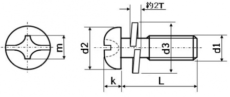 | 特長 | 電気の端子台、カバープレートなどで見かける、+ドライバーでも−ドライバーでも回せる+-穴リセス付きのなべ小ねじのセムス、スプリングワッシャーを組み込んだ「座金組込みねじ」です。+リセスがなめてしまってもカムアウトしにくい−ドライバーで回せる、トラブルに強い便利なねじです。 セムスは圧造というねじの製法と工程の工夫によって誕生しました。ヘッダー加工で成型したねじ下(ねじ山のないねじ)に転造でねじ山を刻む前に座金を組み込みます。転造することでねじの山は座金内径より盛り上がるので座金は脱落せず、組込みの手間も省けて作業性が向上します。 セムス流通の当初[P=2]はシングルセムス【SWとねじの2ピース(piece)】である事を意味していました。現在アルファベットは座金の種類を、数字1〜4でその組み合わせを表します。数字と部品数は必ずしも一致しません。JIS平座金組込みを[P=1]、SW組込みを[P=2]、SWと旧JIS平座金組込みは[P=3]、SWとJIS小型平座金組み込みは[P=4]と呼び、また平座金がISO規格の場合はそれぞれ[I=1][I=3][I=4]とします。 |