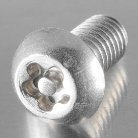 | 特長 | 「いたずら防止ねじ」(盗難防止ねじ、セキュリティねじ)として照明機器やスタジアムの観客席等屋外設備の盗難防止や安全対策、重要な部分は触られると困るが保守点検は必要な機器・装置の不用意な分解やいたずらの防止に利用できます。また展示会のディスプレー、ホテル設備(時計、ラジオ、TV)の固定、窓、ドアのロックなどデザインが気になる場所にも適しています。 5ロブ梅花ボタンボルトとも呼ばれるようにドライブ形状が+・−や六角形でなく梅の花弁のような5ロブ穴(英語lobe耳たぶ 丸い突出部の意)、いじり止めと呼ばれるセンターピン付です。特殊な形状のリセスで取り外しには専用の工具が必要です。専用工具は個人には販売されず一般には出回っていないので「いたずら防止ねじ」として効果的です。ザグリ加工をして頭部を埋め込む、センターピン付6ロブボタンキャップ等リセス形状の異なるねじ・ボルトと組み合わせるなどの方法で効果をさらに上げることが出来ます。 ※締め付け工具はこちらでご購入いただけます。ねじ呼び径と同サイズの工具(例ねじM4―工具M4)と組み合わせでのみ使用可能です。 |