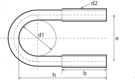 特長 ボルト高さ(h寸法)が一般用より50mm長いタイプのUボルトです。