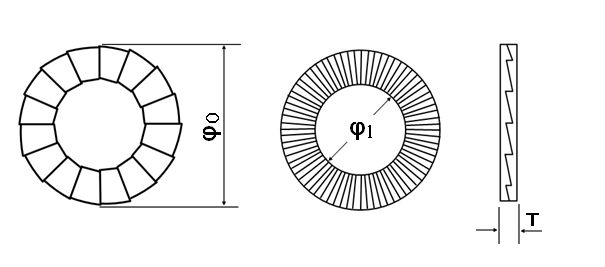 ※平座金・スプリングワッシャーとの併用は不可。また、貫通穴にて相手材を挟み込む場合、片側のみに使用すると他方から緩みが発生する恐れがある為、必ずボルト・ナット両側にご使用下さい。長穴等に使用できる幅広タイプもあります。