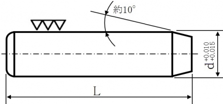 主に大喜多製の取り扱いになり、JIS規格のダウエルピン(JIS B 1355)金型用ダウエルピン (JIS B 5062)とは若干の差異のある大喜多の独自規格品です。形状は外径一定の円筒状で先端は両面とも面取りのある平先、片端は約10°の幅広の面取りが施されています。靭性に優れた機械構造用クロムモリブデン鋼SCM445相当材を使用し調質有、硬度はHRC58〜62に仕上げられています。外径にかかわらず軸公差はA形は+0.005〜+0.010、B形は0〜+0.005とやや細め、C形は-0.005〜0のマイナス目です。