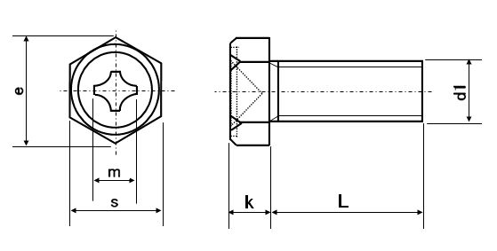 | 特長 | 機械や建築等の一般的な締付けに、またナンバープレート留めなど自動車等でもよく利用されています。 頭部は丸みのある六角形で、上面は平らに凹んでいます。中央には十字の駆動溝もあり、+ドライバーの他、ボックスレンチ、スパナ、メガネレンチ等の工具でも締め付け出来ます。このため頻繁に付け外しが必要な個所や複数の人が扱う場所でとても使い勝手が良く、重宝されています。また外観は比較的柔らかい印象なので装飾的に利用されることもあります。 通常の六角ボルトは圧造で頭を円板形に形成し、六角形の穴が開いたダイスでトリミング(打ち抜き加工)して六角形に仕上げ、鋭角的で武骨な印象を与えます。一方、アプセットボルトはリセスを含め頭部の六角形を圧造だけ形成し、丸みのある滑らかで柔らかな印象になります。+ドライバーで締結できるので六角アプセット小ねじやプラスネジと呼ばれることもあります。小径のアプセットボルトを締緩する際にスパナやモンキレンチを使用すると、掛かりにくくなめやすいので注意が必要です。 |