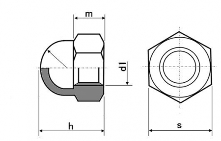 袋ナットはキャップの形状とその製造方法で「形」が定義されています。1形、2形は切削加工によって六角ナットとドーム頭部が一体成型され、2形には逃げ溝が有ります。3形は成型した六角ナットとプレス加工で成形したドーム部を溶接し一体化します。「種」は六角ナットの規格で1種は着座面には面取りが無く(片面取り)高さは呼び径の約8割です。2種は高さは同じで両面取り、3種は両面取りで高さが約6割と薄くなります。