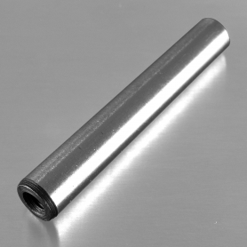 | 特長 | 主に「固定」や「位置決め」、再組立て時の「高い再現精度」を目的に用いられるテーパーピンは、機械部品や治具に設けたリーマ穴へ打ち込んで使います。予めリーマ穴加工が出来る場合は平行ピン、組立て調整後にリーマ加工をする場合はテーパーピン、金型や頻繁に再組立てする場合はダウエルピンと言われています。 円筒形の1/50テーパー(50mm進むと1mm太くなる)で引抜工具にて引抜き易い内ねじ付き、反対側の端は丸先です。ねじ部の無いプレーンや他の部品と組み合わせ出来る外ねじ付きもあります。 取扱いは主に大喜多製となりJIS規格ではなく大喜多規格品で、嵌め合い公差はプラス目(H9)、L(長さ)レンジにより内ねじ径が選べるなどJIS規格品と若干異なります。機械構造用炭素鋼S45C-Aの 調質なし(熱処理なし HRB70-HRC21)、またはS45C-Qの調質あり(HRC30-37)を選ぶことが出来ます。ステンレス(SUS303相当材)は耐食性が必要な場合にご利用ください。 サイズは『d1(最小径)×L(長さ)』です。Lは全長(R面含む)です。 抜取り工具ノックアウターのご購入はこちら。 |