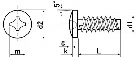 | 特長 | B0バインドタッピンやB0バインドとも呼ばれます。頭部が凸レンズの端を縁取り(英binding)したような少し厚みのある形状が「バインド」で着座面はフラット、なべ頭より着座面積が広く装飾目的で使用されることもあります。 B0タイプはタッピン2種と分類され、薄鋼板または5mm以下の厚板・樹脂・硬質ゴム等に使用します。比較的ピッチは粗く軸の先端2〜2.5ピッチ分はテーパー(先細り)です。構造用鋼や鋳物にも使えるB1タイプは先端をカットした「刃」が相手材を切削してタップ立てをし、ねじ込み抵抗が小さくなります。 タッピングねじ(タッピンねじ)は下穴が必要ですが、ねじ込まれると自ら相手材下穴へめねじを形成して(セルフタッピング)締結するのでナットやタップ立てが不要です。また塑性変形しためねじとの嵌め合いに遊びが無く、緩みや脱落が起き難くなります。また締結時に切子はほとんど出ません(2種B1・3種C1を除く)。締結の際のねじ込み抵抗は大きくなります。 ねじ込み抵抗の少ないタップタイト、下穴無しで締結できるドリルねじもご利用ください。 |