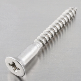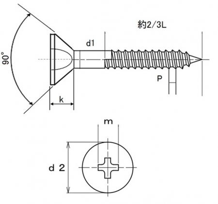 | 特長 | 木ねじ(もくねじ)は名前の通り木材同士を締結する為のねじです。頭部が円錐型の皿頭は締結の際に部材に頭部が沈み込むことでねじと部材を面一に仕上げます。硬質材の場合は事前に皿グリ(ザグリ加工)をしておくことで美しく仕上がります。一般に部材の割れや斜めに入ってしまうことを防ぐために、ドリルや錐(きり)を使って木ねじより少し径の小さい(ねじの太さの70%程)の下穴を開けてから使用します。そうすることで作業性が向上し仕上がりも美しくなります。 木ねじの特徴はねじの無い円筒部分があることです。ねじ部は先端側の全長の約2/3程になります。締結時に頭側のねじの切られていない部分では取付け材部分とねじは空回りし、ねじの効いている土台材は引き寄せられて密着することで強く固定されます。 DIYなどで木材同士の組み立てをする際に木ネジは釘に比べてしっかりと木材を固定する事が出来ます。簡単には緩まずドライバーで部材に傷をつけず簡単に外せます。 ねじの呼び径はねじ無し部分の径となります。 皿頭なので、呼び長さに頭部を含みます。 |