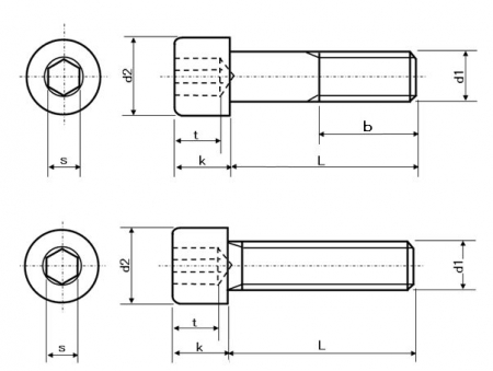 特長 頭部に六角形の穴があるため六角穴付ボルトと呼ばれています。キャップスクリュー、キャップボルトとも呼ばれ、機械や車両等の一般的な締結に広く使用されています。軸の中心に六角レンチを差し込み六角形のすべての辺を利用して締結するので、カムアウトしにくく安定した締め付けができ、高負荷・高トルクでの締付が可能というメリットがあります。