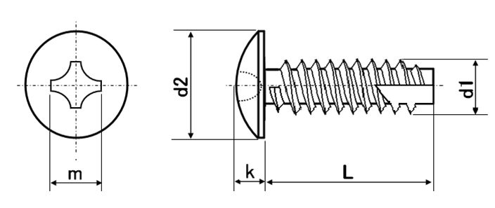 特長 B1トラスタッピンやB1トラスと呼ばれる、相手材の下穴へねじ山をセルフタップタッピングする為、ナットやめねじ立ては不要なタッピングねじ(タッピンねじ)です。トラス頭は頭部形状が凸レンズの様で接地面はフラットです。着座面積が大きく面圧を下げるので平ワッシャー無しでもワークの陥没を抑えることが出来、緩みに強くなります。